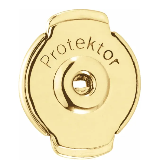 A simple 4 prong 14K yellow earring setting for custom earrings. The earring back is called a protector. The sides of the back are pushed in to secure and lock the backing on