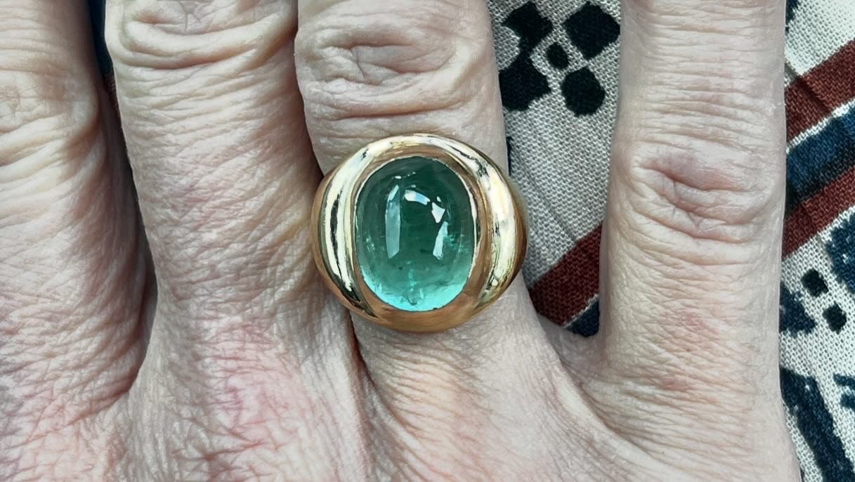 Mint Green 16 carat Tourmaline Cabochon Ring 18K gold bezel setting